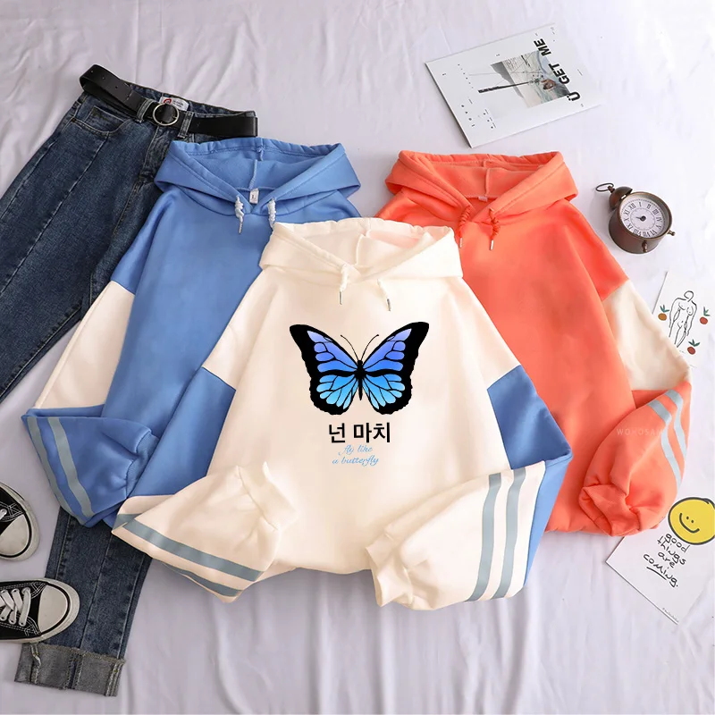 Корейский альбом LOONA худи с рисунком бабочки Толстовка Kawaii синий градиент Графический для женщин вентиляторы, изготовленные по лоскутной технологии, толстовки с капюшоном