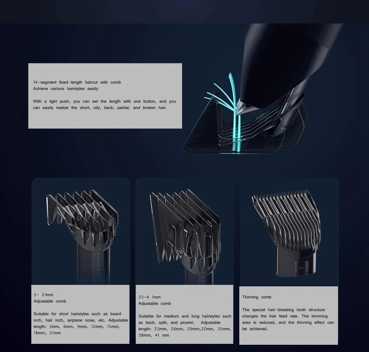 14 выбор гребня с фиксированной длиной, регулируемая длина 3 мм-41 мм