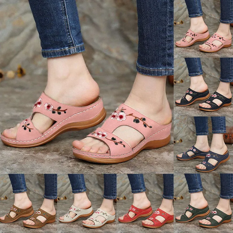 Сандалии женские в этническом стиле, удобные босоножки на платформе, с цветами, плоская подошва, повседневные модные тапочки, лето 2021