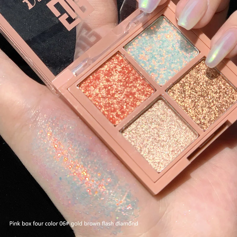Палетка теней для век, 4 цвета, блестящие перламутровые тени для век, Палетка с блестками и бриллиантами, мелкая шелковистая пудра, легко наносится