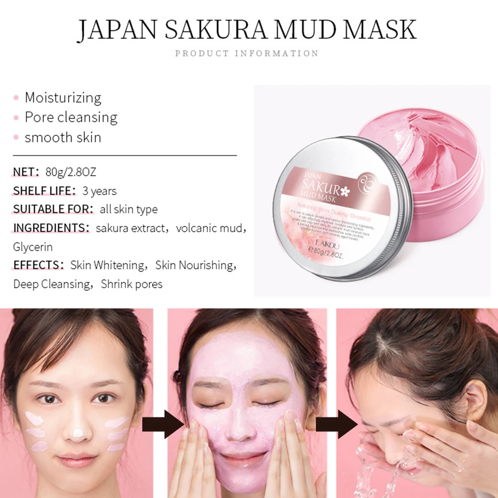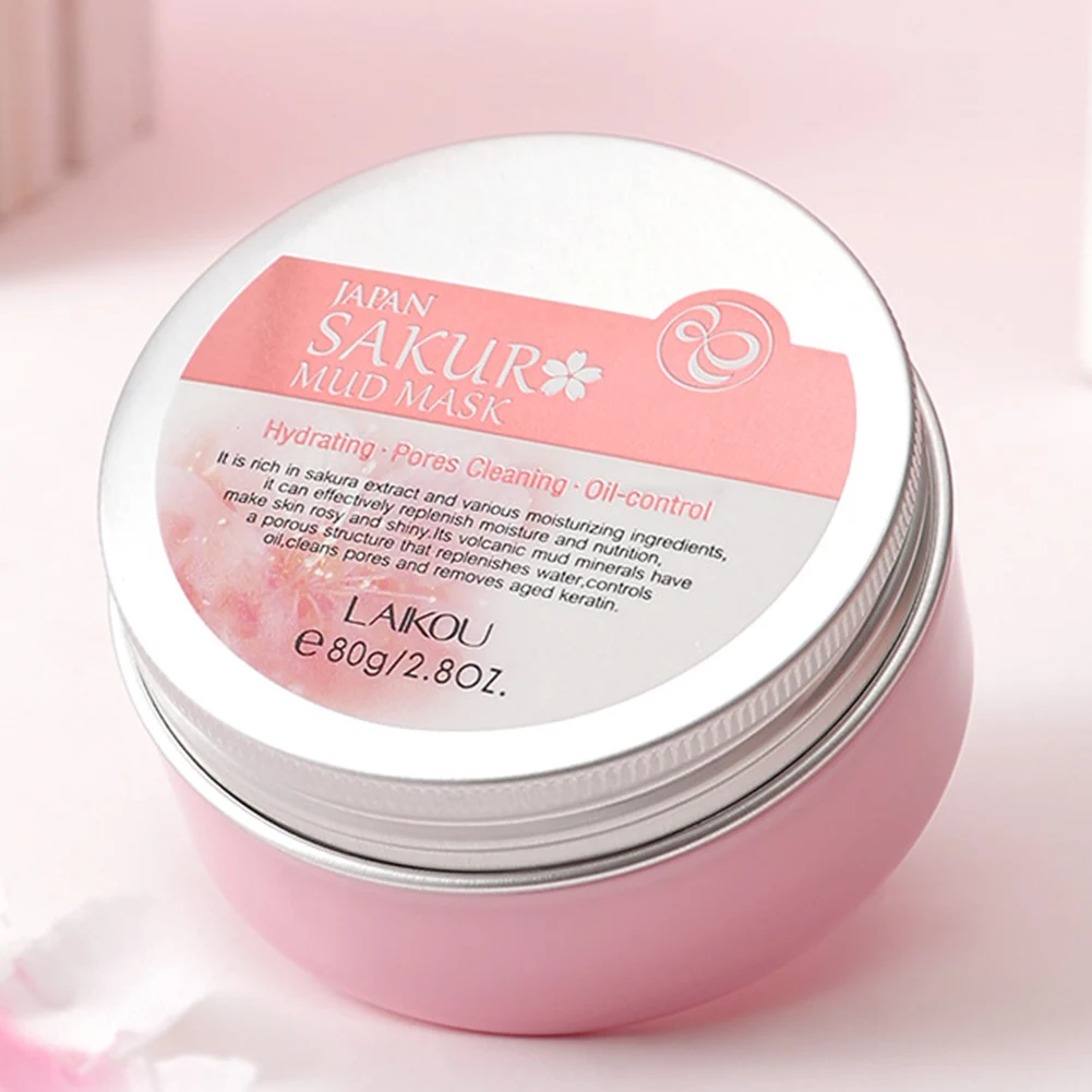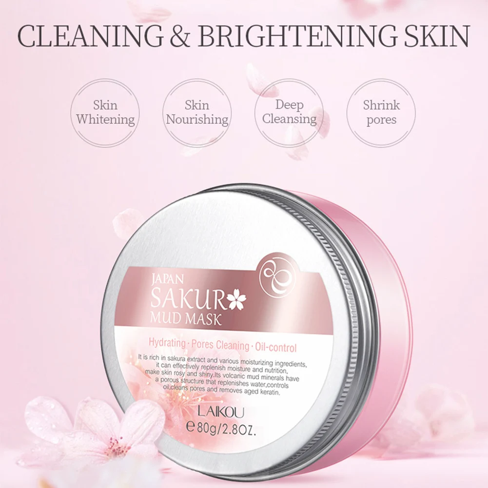 Японская глиняная маска Sakura, глубоко очищающая, отбеливающая, восстанавливающая кожу, Корейская маска для лица, контроль жирности, Усадочные поры кожи, уход 80 г
