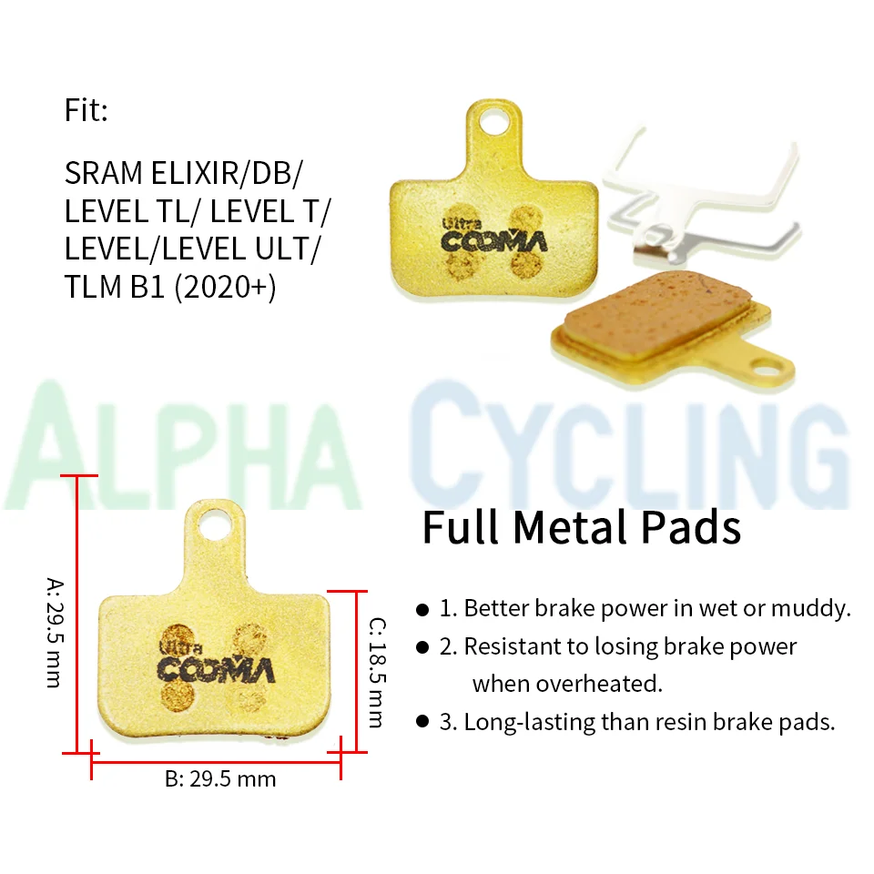 Велосипедные дисковые Тормозные колодки для SRAM ELIXIR/DB/LEVEL TL/LEVEL T/LEVEL ULT/TLM B1 (2020 +) суппорт