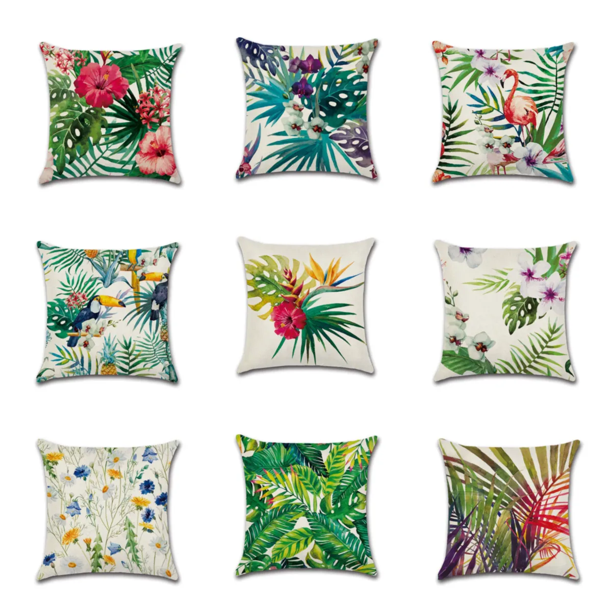 Наволочка Kapcotton с рисунком тропических растений, наволочка с фламинго для дома, декоративная подушка для дивана