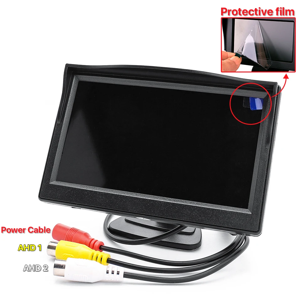 Автомобильный монитор Greenyi, 5-дюймовый AHD монитор с камерой заднего вида с углом обзора 170 градусов, рыбий глаз