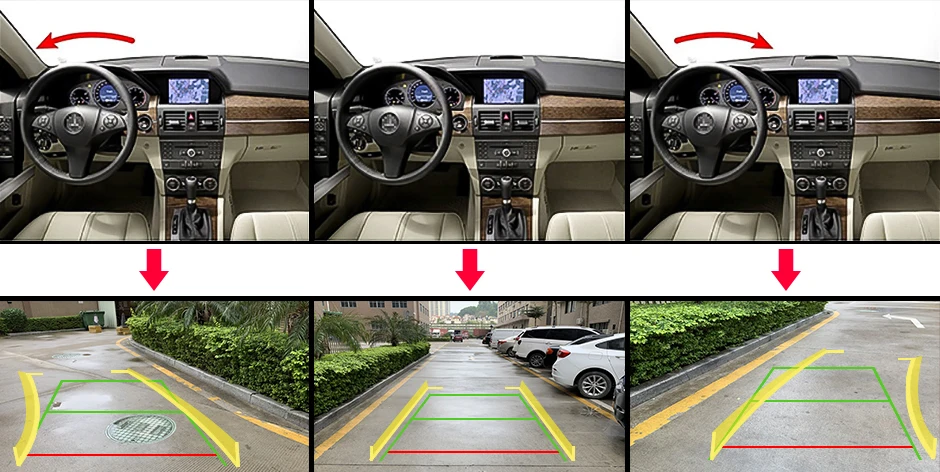 1. Линия траектории регулируется треком автоматически в соответствии с движущимся положением и скоростью кузова автомобиля и углом. Он не следует за рулем.2. Камера не может снять траекторию парковки.