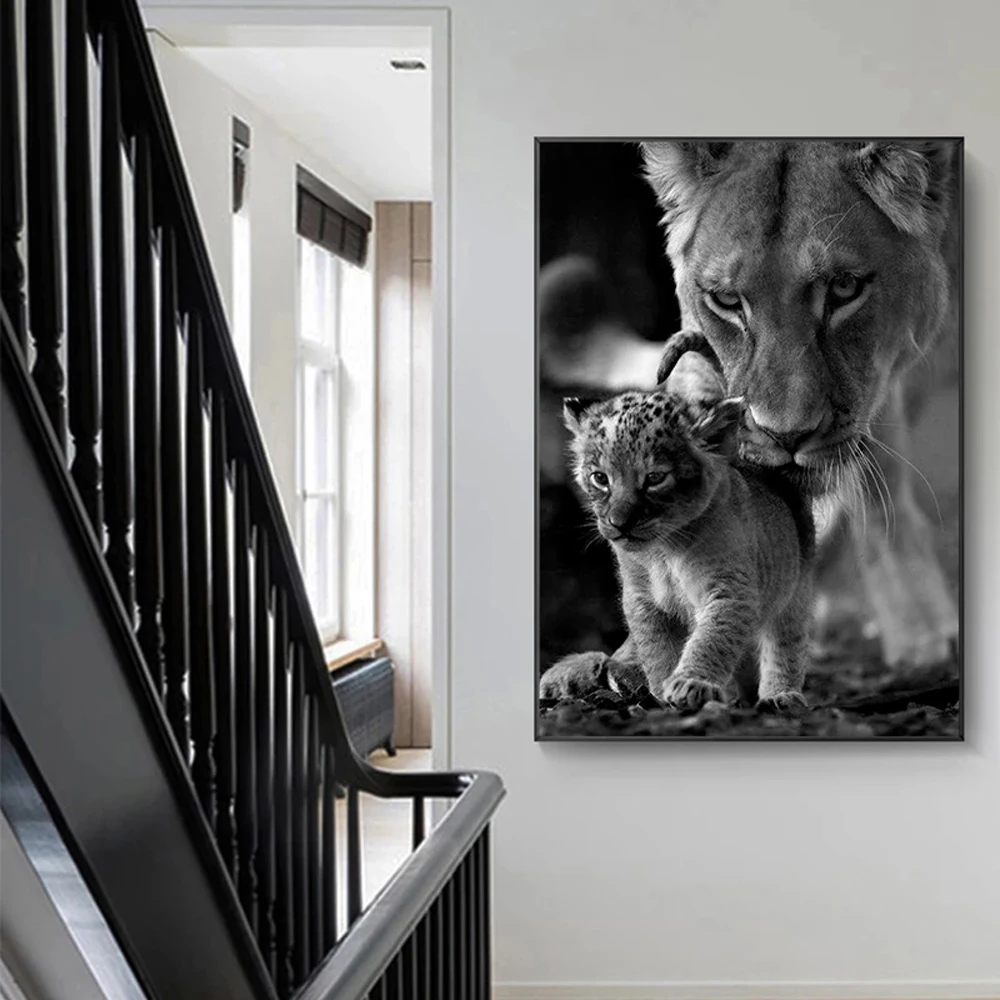 Животное, черно-белый холст, искусство, львица и куб, картина, искусство рисунка на стене, картина для домашнего декора гостиной