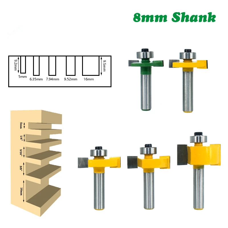 Фреза Т-образная для обработки дерева с хвостовиком 8 мм, 5 шт., столярные инструменты т-образных пазов