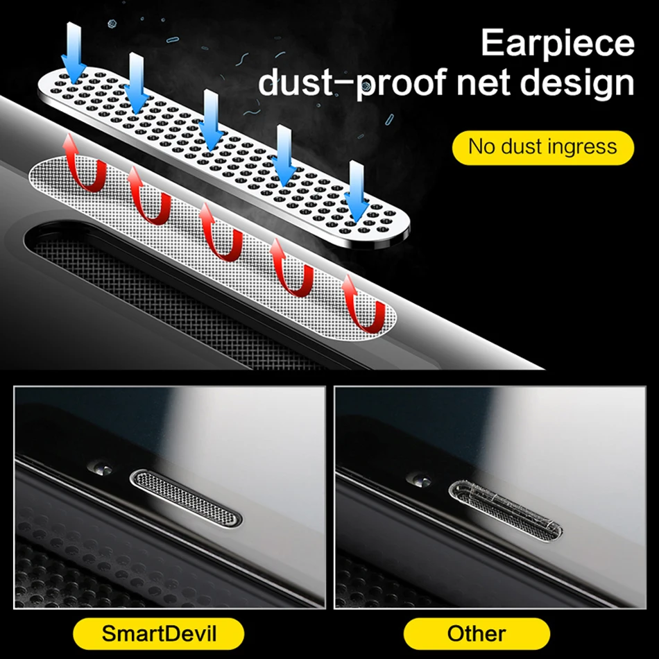 Feature 8Earpiece Dust Net Tempered Glass Film