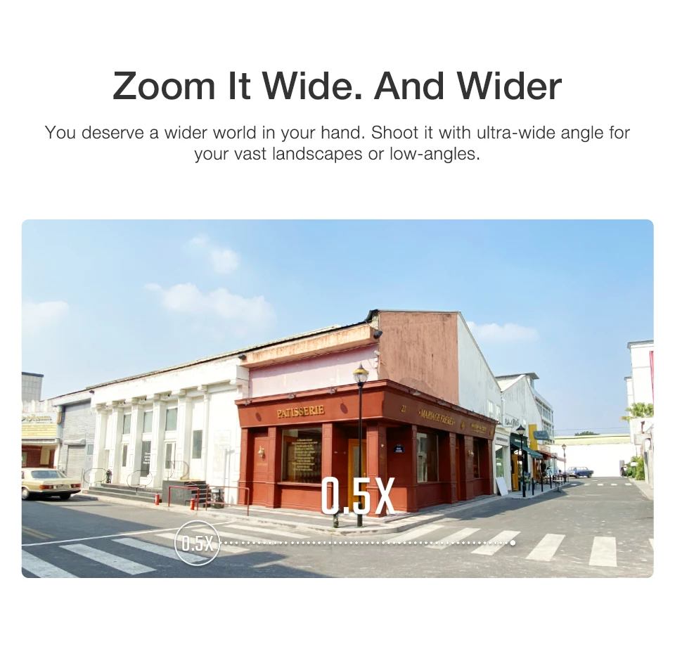 Вы заслуживаете более широкого мира в ваших руках. Снимайте его с ультра-широким углом для ваших обширных пейзажей или низких углов. * Доступно только в iOS и смартфонах, поддерживающих широкоугольную съемку.