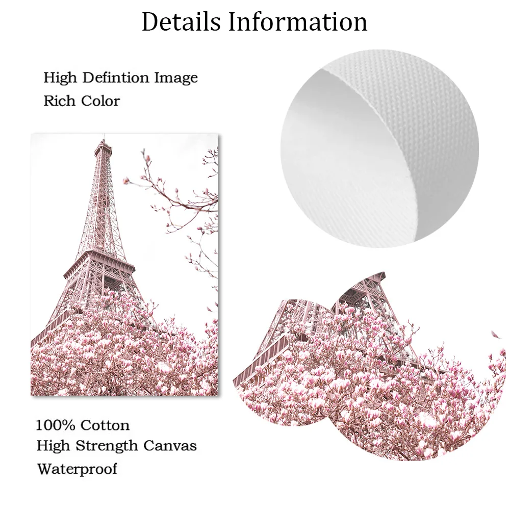 Скандинавский постер с розовыми цветами, Эйфелева башня, Художестве...