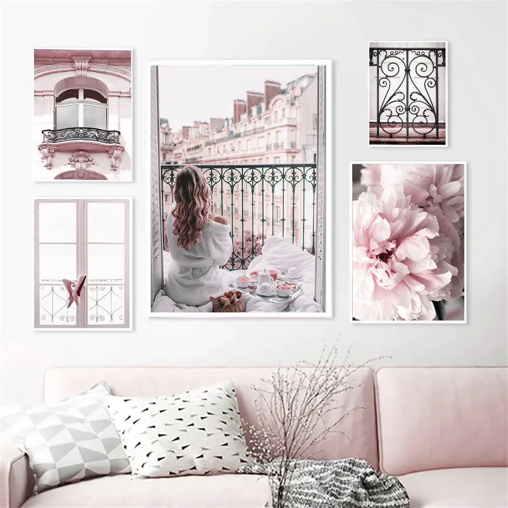 Современный постер с розовыми цветами, Эйфелева башня, почтовый ящи...