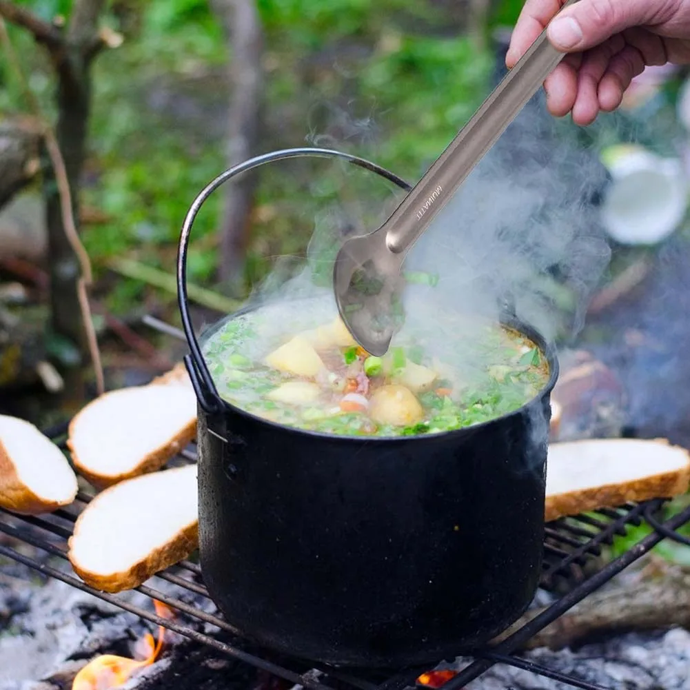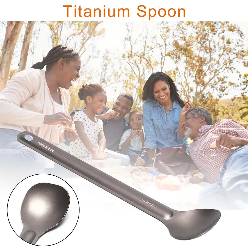 Титановая длинная ложка, портативная ложка с длинной ручкой, столовые приборы для открытого воздуха, пикника, кемпинга, альпинизма