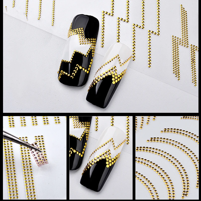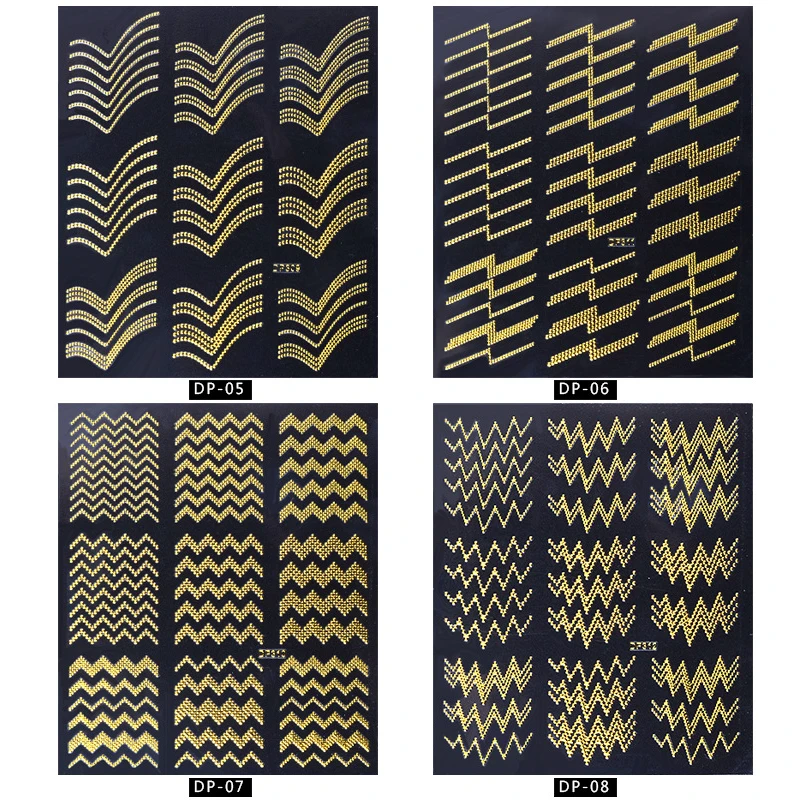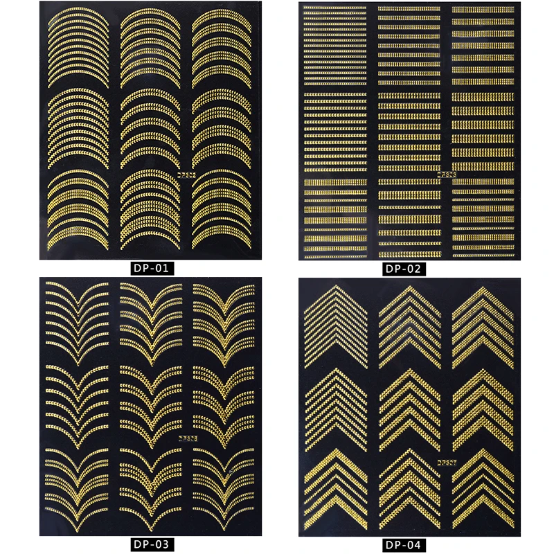 Золотая 3D наклейка для ногтей, 1 шт., изогнутая полоса, линии, наклейка для ногтей, стойкая золотая металлическая наклейка для ногтей, разные узоры, полезный инструмент для творчества