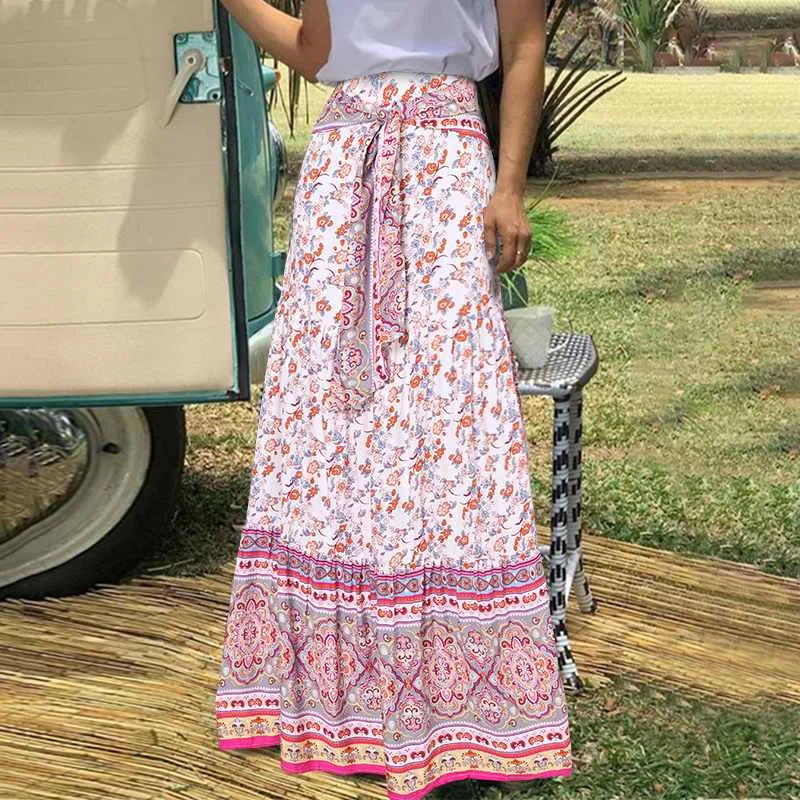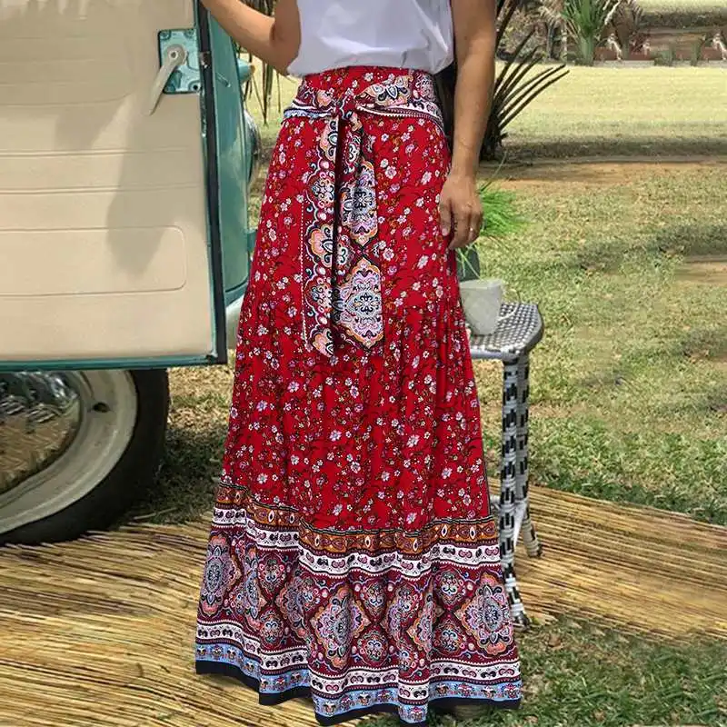 Юбка Женская Длинная с цветочным принтом, элегантная повседневная плиссированная юбка Celmia с завышенной талией, с бандажом, в богемном стиле, лето 2021