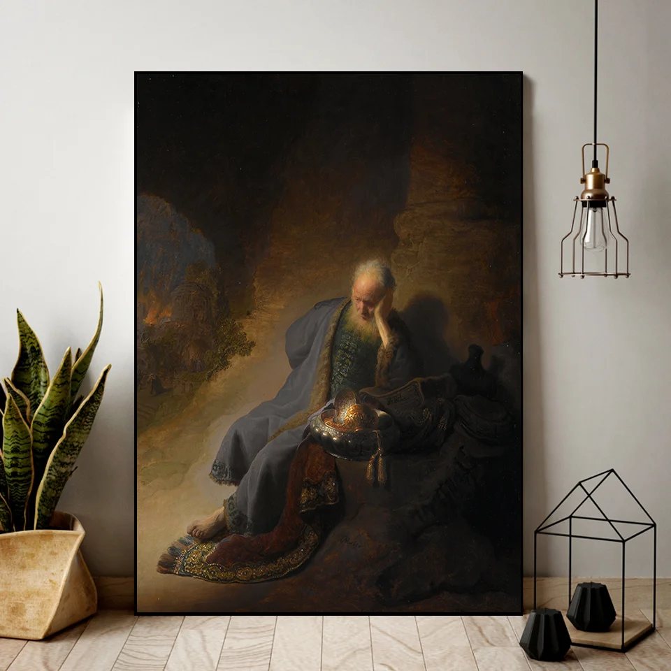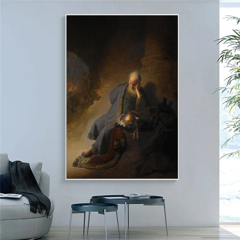 Рембрандт, известный мастер-художник, Иеремия ламентин, разрушение jerusма, холст, живопись, Постер и принты, настенное искусство, Декор