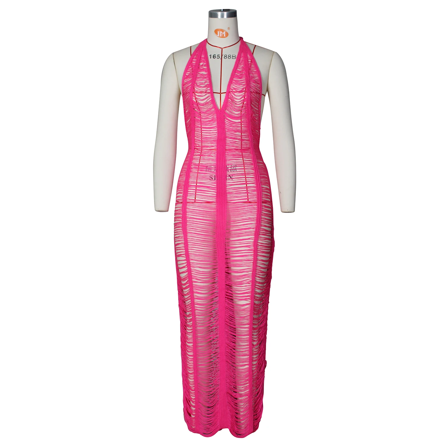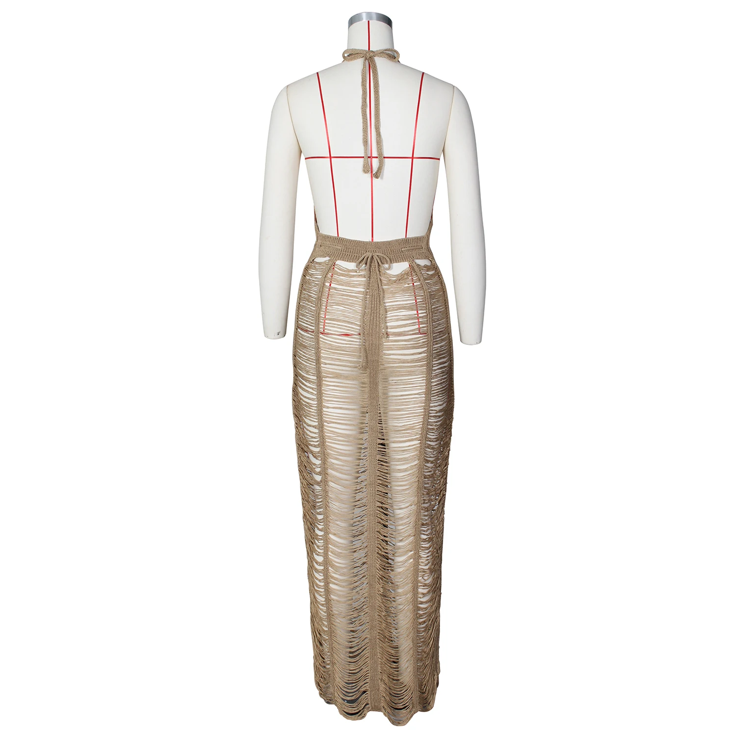 Женское вязаное платье RT, длинное пляжное вязаное платье с открытой спиной, V-образным вырезом