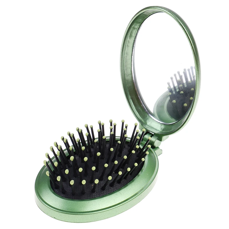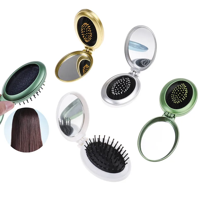 Расческа для волос портативная, небольшая, Антистатическая, круглая, компактная, массажная, складная, с зеркальцем