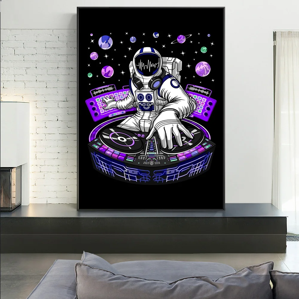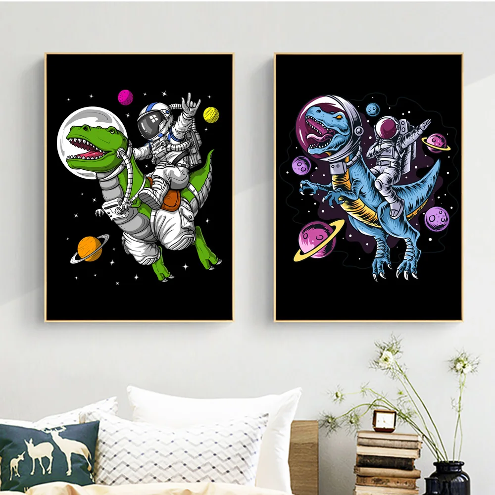Забавные плакаты и принты диджея с изображением динозавра, космонавта, живопись на холсте, домашний декор, настенные художественные картины