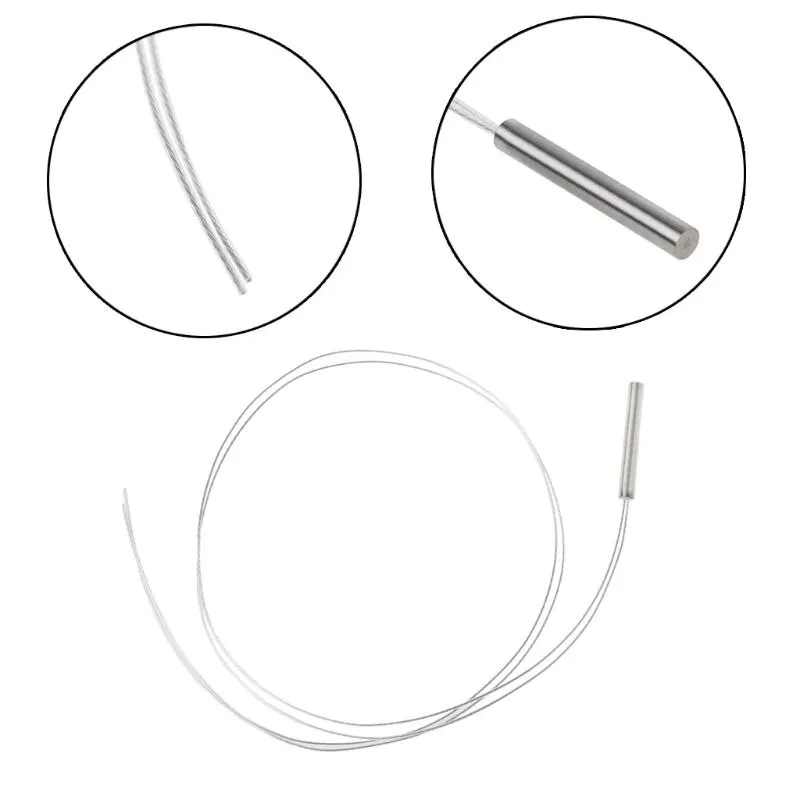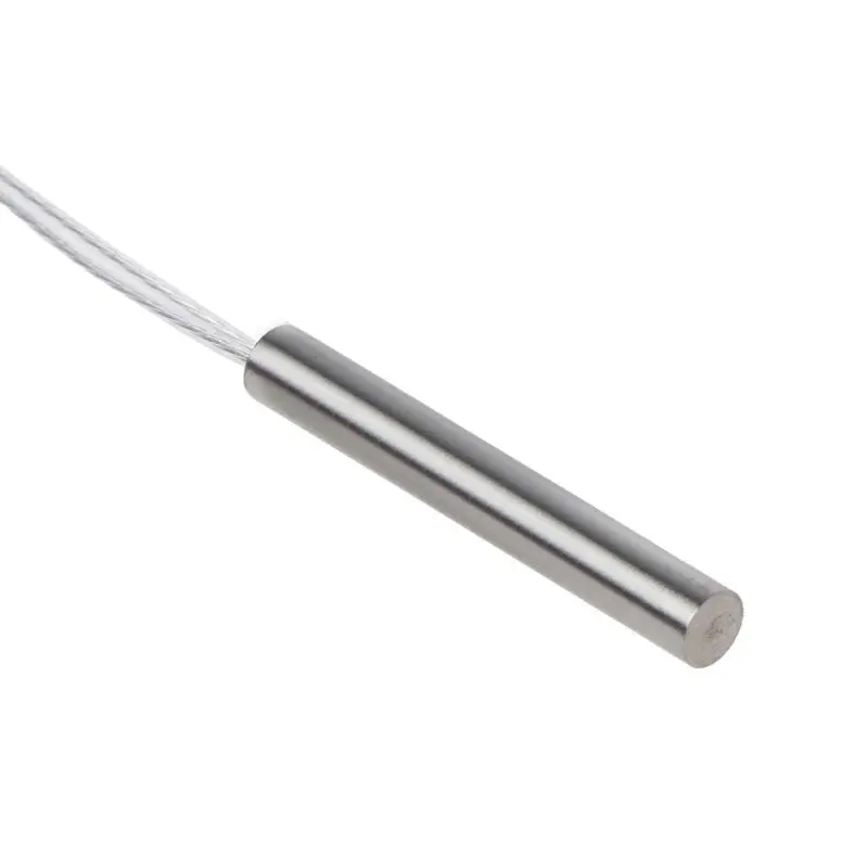 Принцип работы платиновых датчиков температуры PT100 основан на измерении сопротивления. У платины позитивный коэффициент сопротивления, он растет вместе с увеличением температуры. Изменение сопротивления 0,39 Ом на 1°С. Платина отличается хорошей стабильностью и устойчивостью к перегрузкам. Длительная стабильность работы значительно отличается от других методов измерения температуры - менее 0,2 Ома при 0 °С в год. Сопротивление PT100 при 0 °С равно 100 Ом.Технические характеристикиМаксимальная рабочая температура (°C): 350Допустимое отклонение (°C): ±2,5Диаметр капсулы (мм): 3Длина капсулы (мм): 30Диаметр капсулы (мм): 4Длина проводов (м): 1