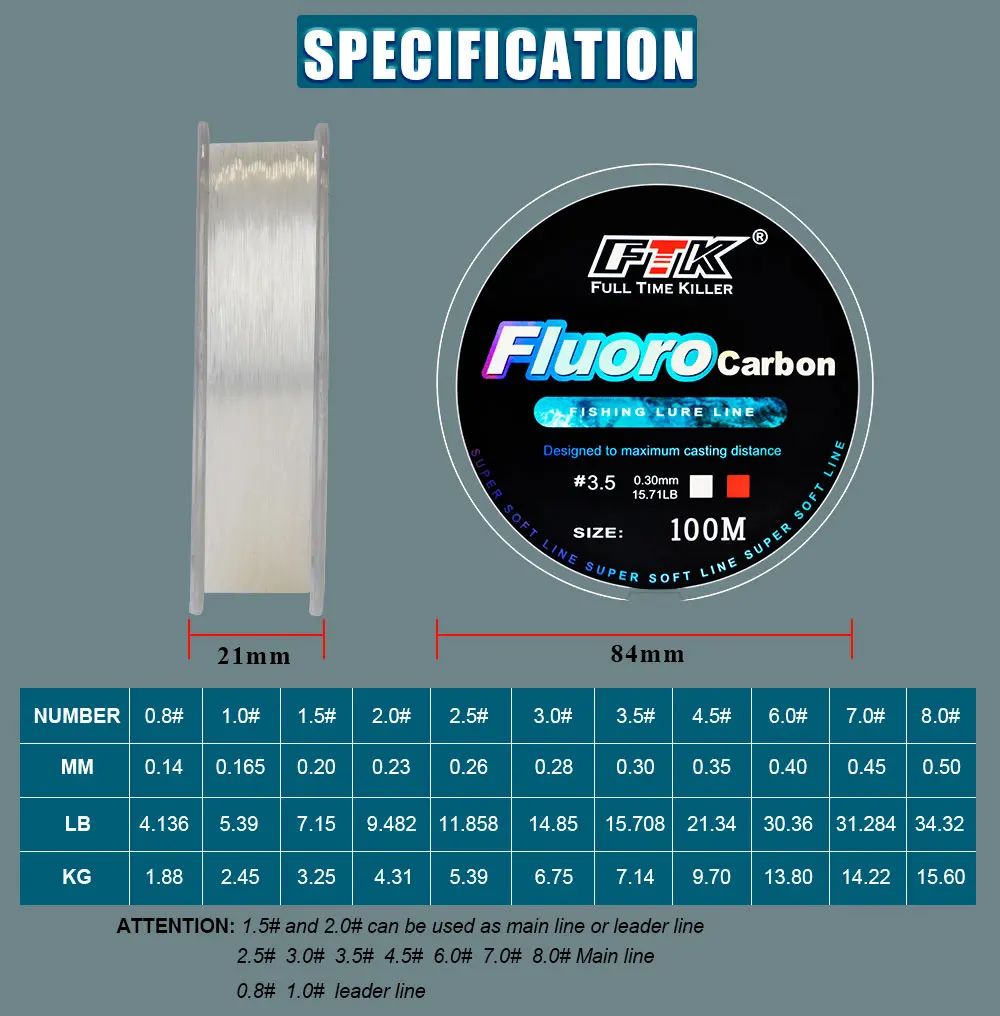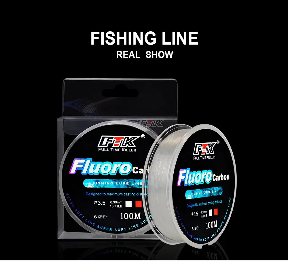 Фторуглеродная рыболовная леска FTK, 100 м, 4,13-фунтов, леска для поводка из углеродного волокна, леска для раковины, рыболовные аксессуары