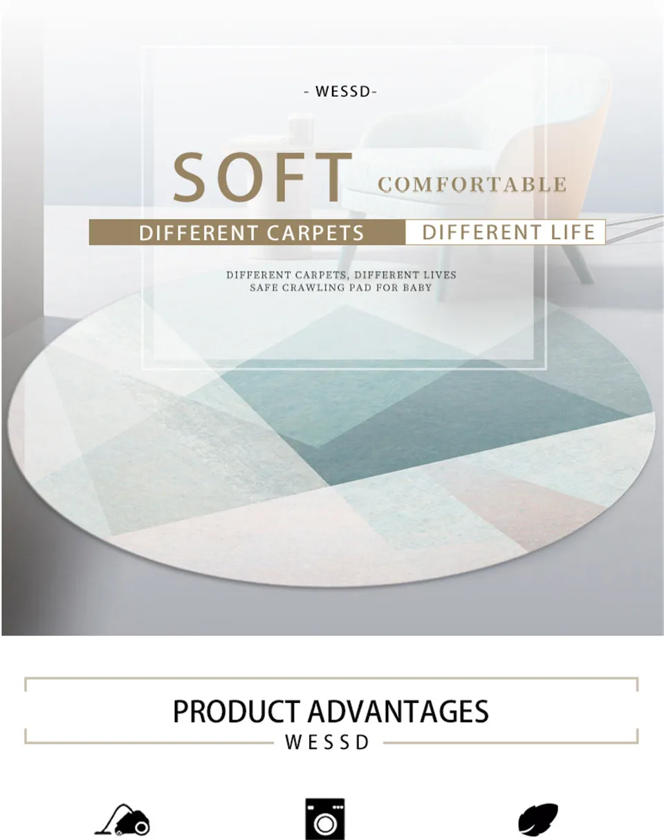 Простой Зеленый Розовый ковер для спальни с геометрическим рисунком, круглые напольные покрытия, круглый ковер для комнаты, кофейного столика, декоративный ковер для дивана, стула