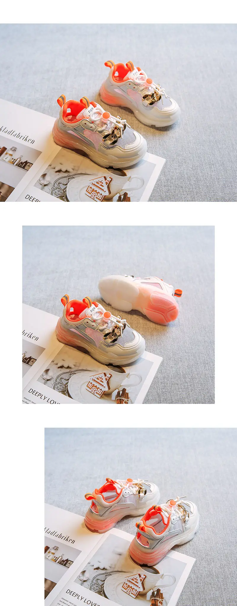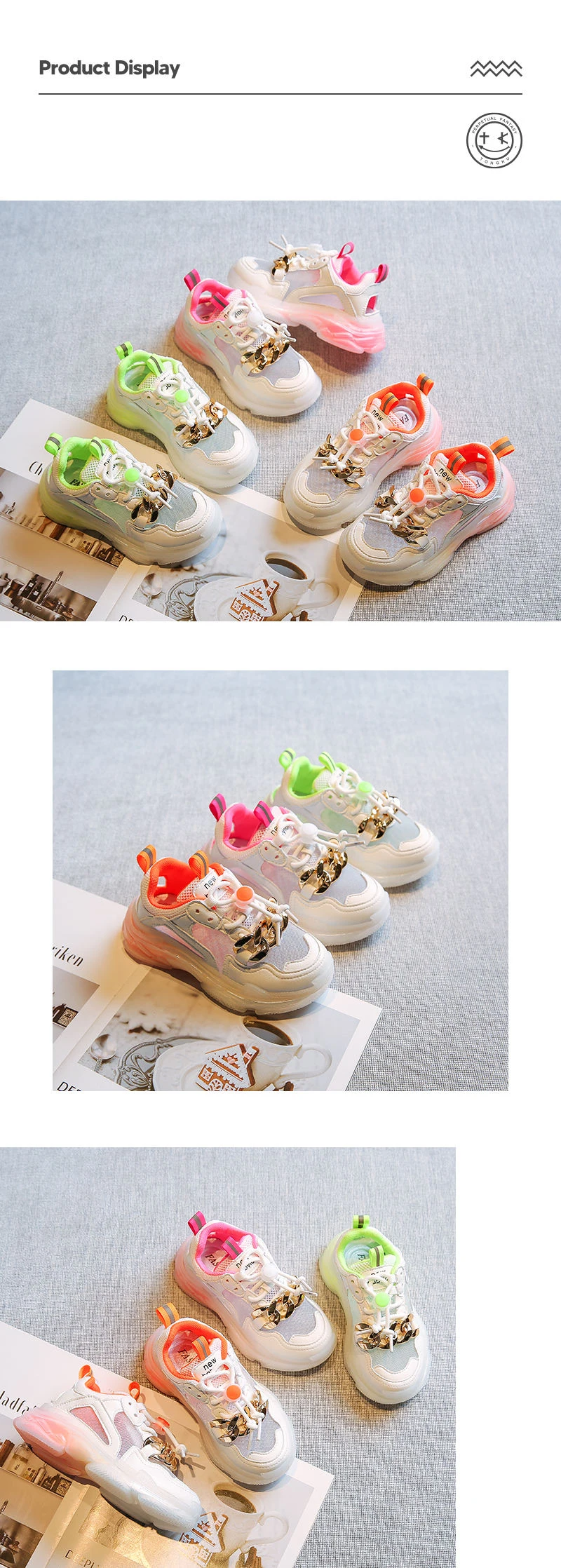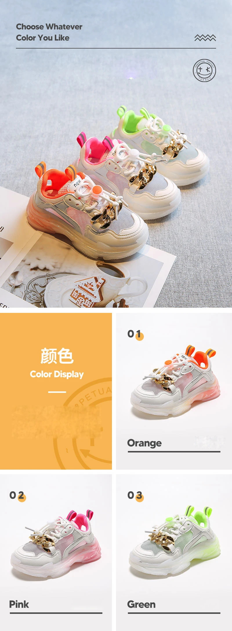 Новые осенние детские спортивные кроссовки для маленьких девочек; Брендовая обувь с цепочкой; Детские повседневные кроссовки из сетчатого материала; Кроссовки без застежки для мальчиков