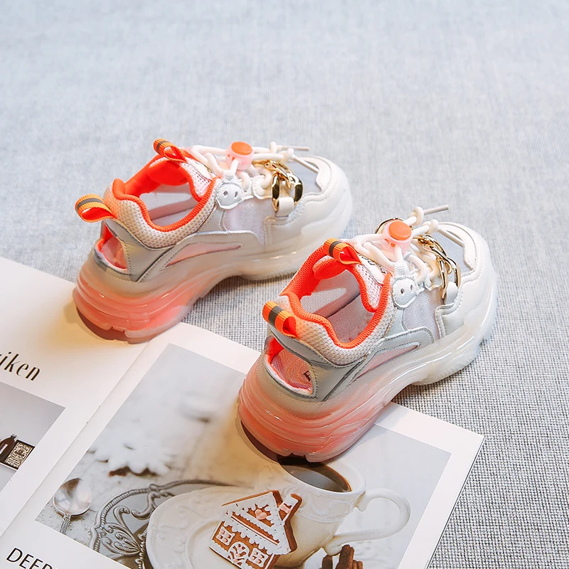 Детские кроссовки без шнуровки, брендовые сетчатые, спортивная обувь на массивной подошве для маленьких девочек, повседневные, на осень
