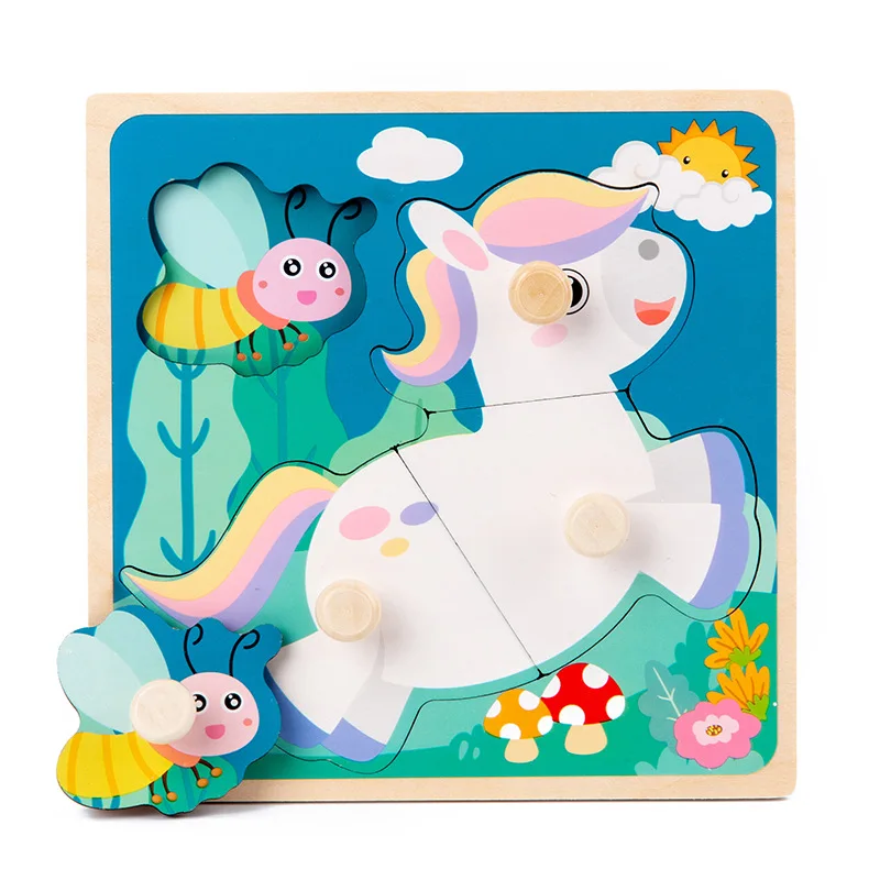 Детская Доска для захвата рук, 3D пазл, деревянные игрушки для детей, Мультяшные животные, деревянная головоломка для раннего обучения, обучающая игрушка