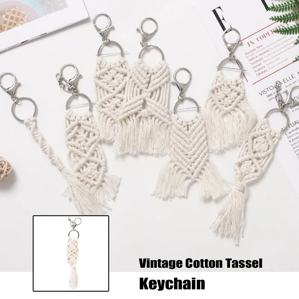 Брелок для ключей женский в стиле бохо, винтажный хлопковый держатель с кисточками, кольцо для талии, сумочка макраме, изящные украшения для подарка
