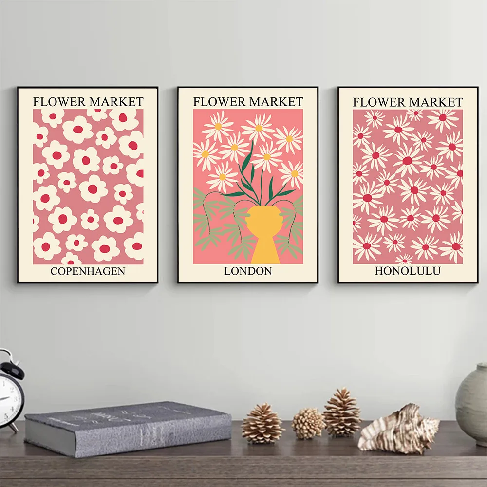 Абстрактный цветок Рынок холст винтажный настенный плакат Художественная печать живопись Лондон Япония Плакаты Nordic настенные картины Декор в гостиную