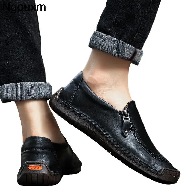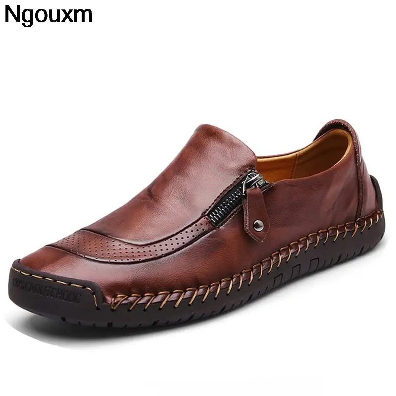 Туфли Ngouxm мужские из натуральной кожи, повседневные лоферы, плоская подошва, ручная работа, классические мокасины, весна-осень