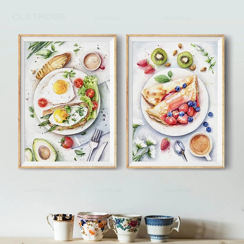 Кухонные акварельные забавные постеры и принты продукты фрукты холст настенные картины завтрак художественная живопись обеденный Декор подарки