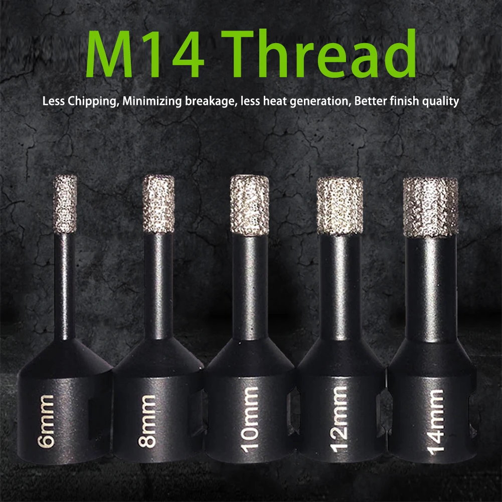 Алмазное сверление 61012 мм, профессиональное качество, сухое вакуумное паяное сверло, сердечники, алмазный Мраморный отверстие, резьба M14