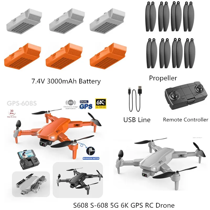Наименование товара: S608 5G 6K GPSWIFI FPV RC Дрон вертолет запасные части 7,4 V 3000MAH батарея и так далее