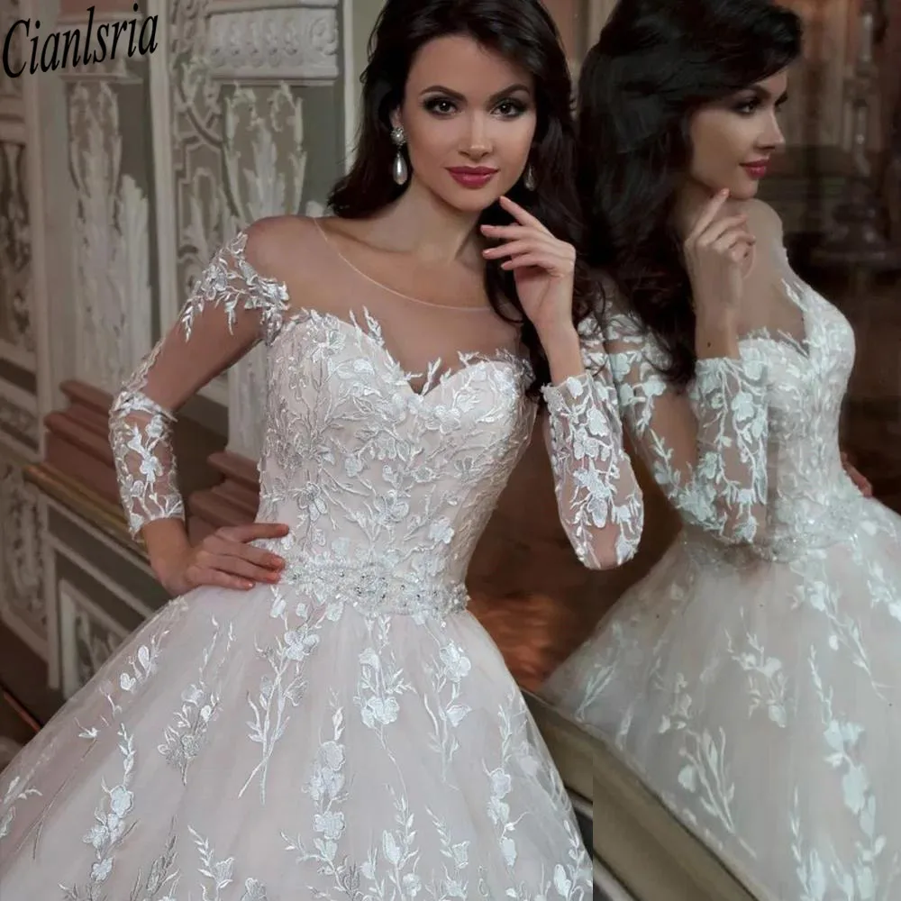 Женское свадебное платье с длинным шлейфом, платье с длинными рукав...