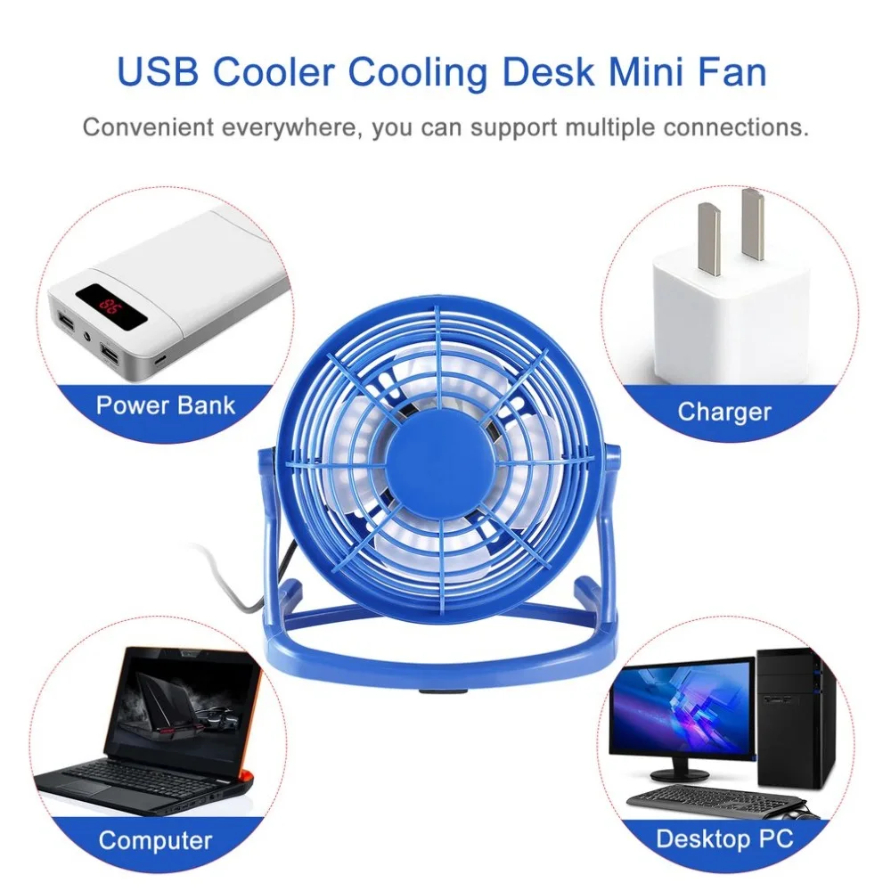 Мини-вентилятор, 4 лопасти, вращение на 180 градусов, 5 в постоянно...