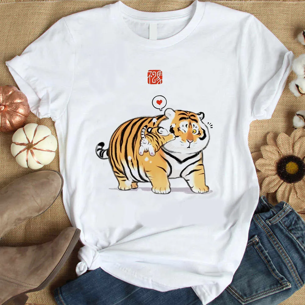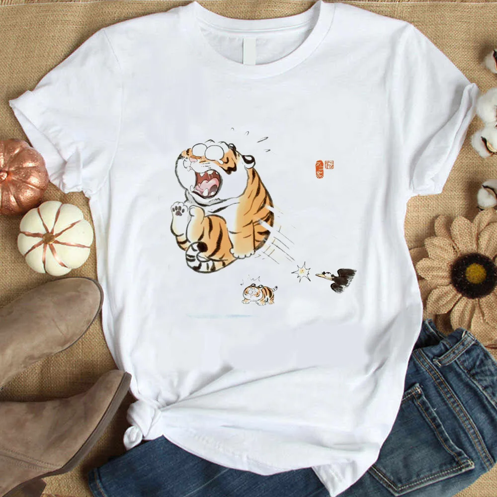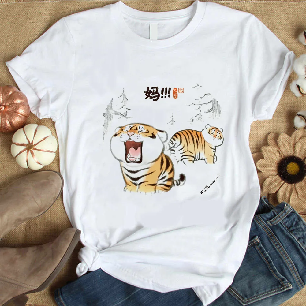 Футболка с изображением тигра в стиле Харадзюку, мягкая футболка с короткими рукавами и круглым вырезом, 2021, женская летняя футболка