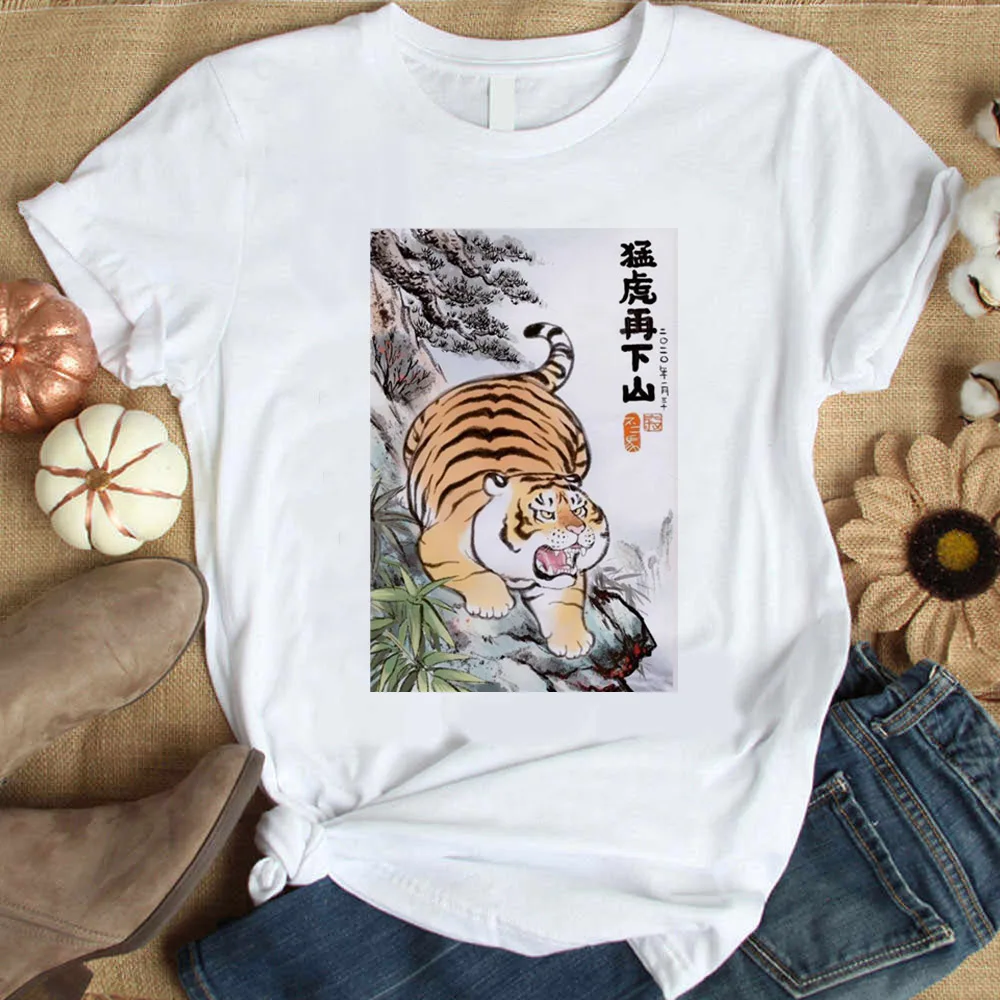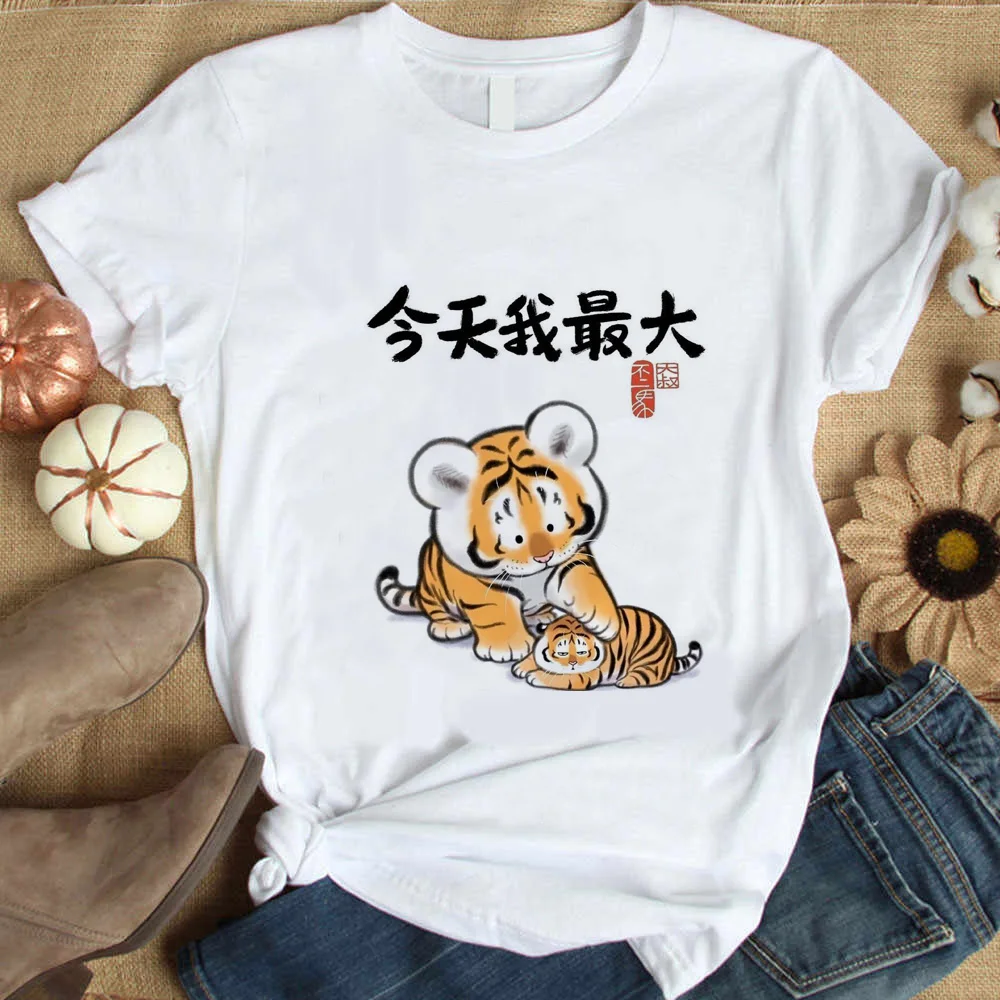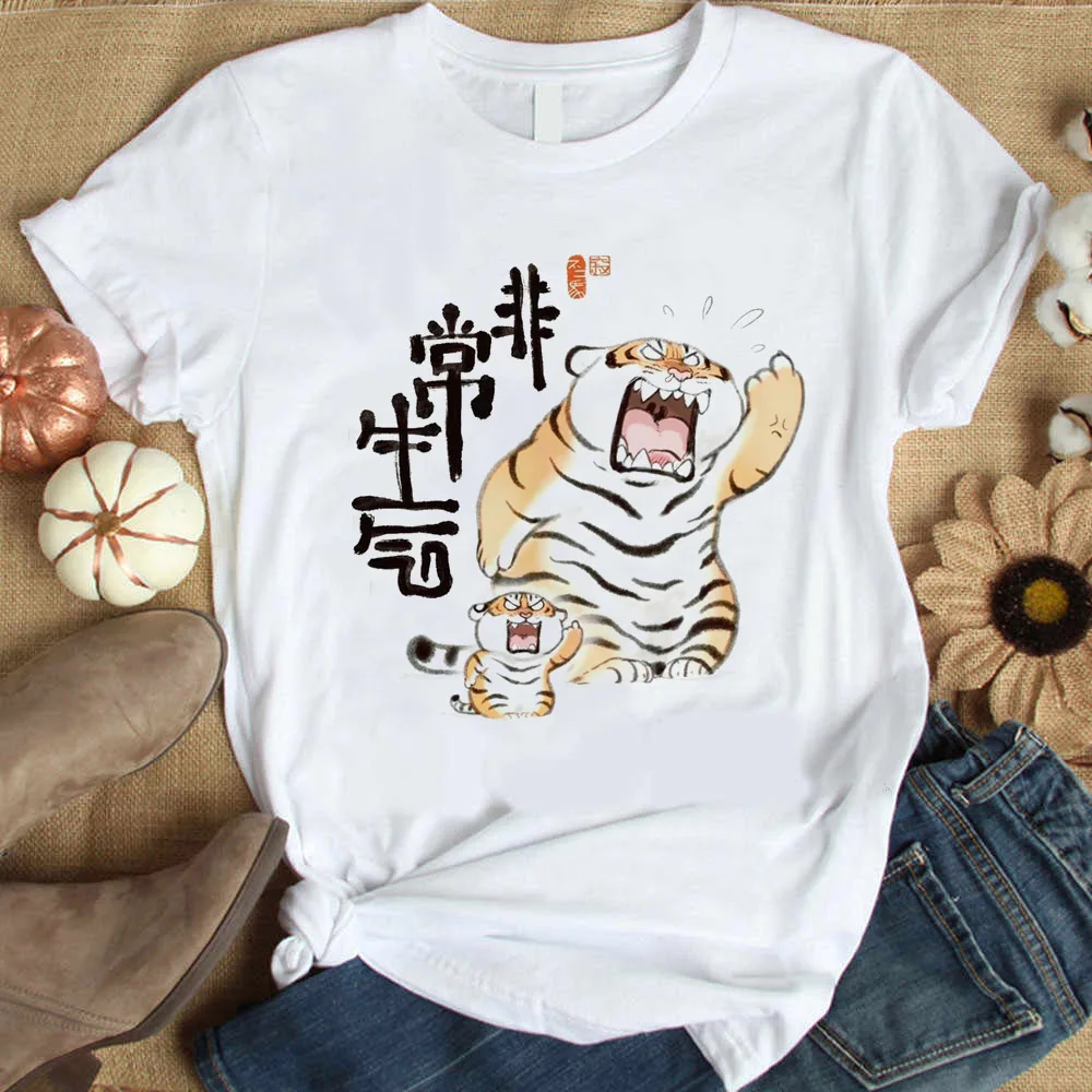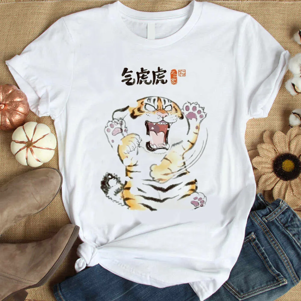 Футболка с изображением тигра в стиле Харадзюку, мягкая футболка с короткими рукавами и круглым вырезом, 2021, женская летняя футболка
