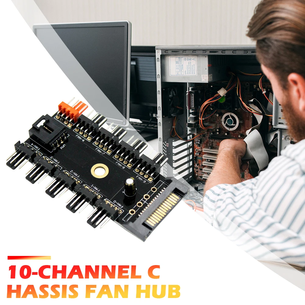 Новинка, 10 портов, вентилятор-концентратор для ПК, компьютерный кабель, охлаждающий контроллер скорости, адаптер охлаждения, разделитель, удлинитель SATAбольшой