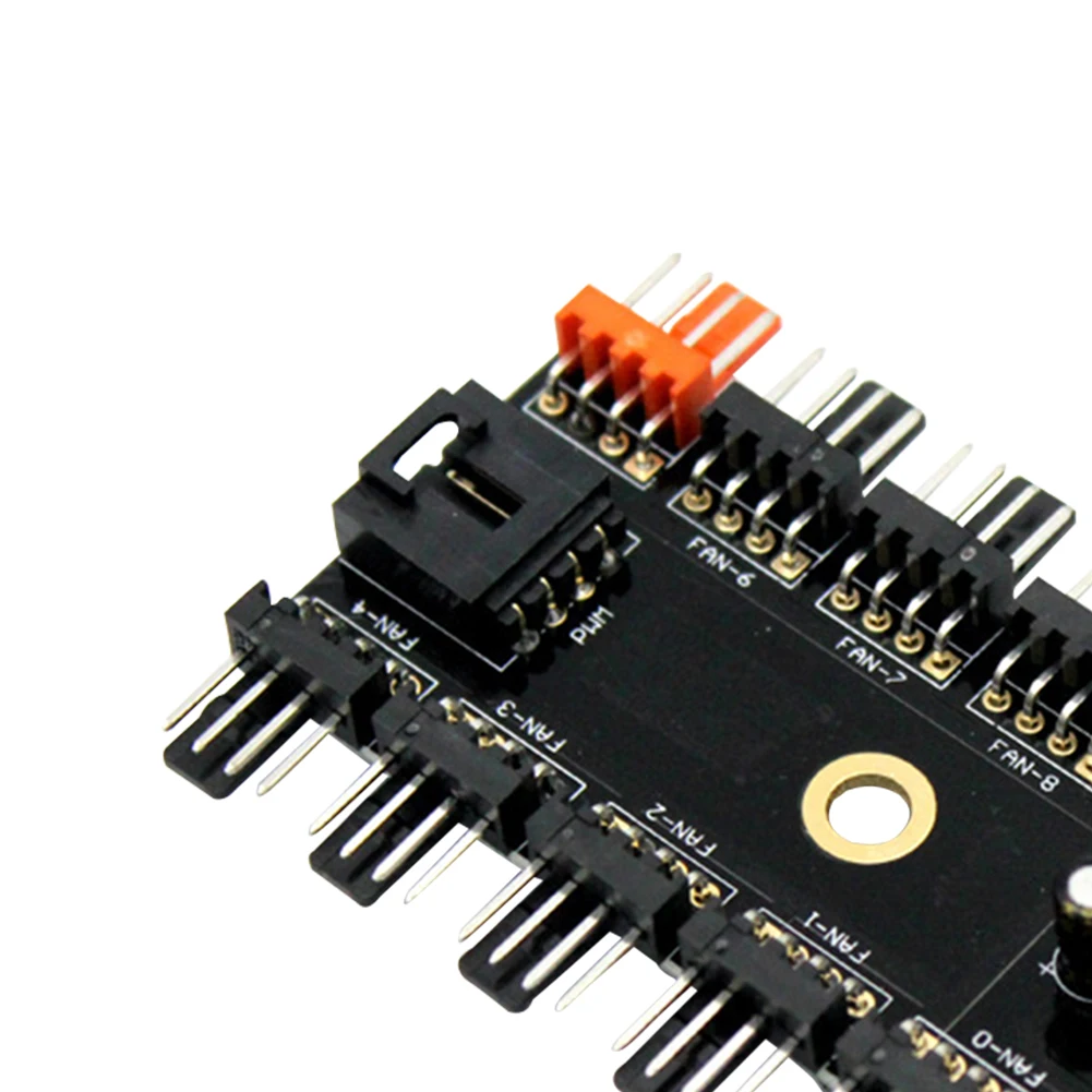 1. Он может поддерживать 10 вентиляторов с 3-контактным/4-контактным интерфейсом. После подключения кабеля контроля скорости PWM может быть осуществлен контроль температуры и регулирование скорости вентилятора.