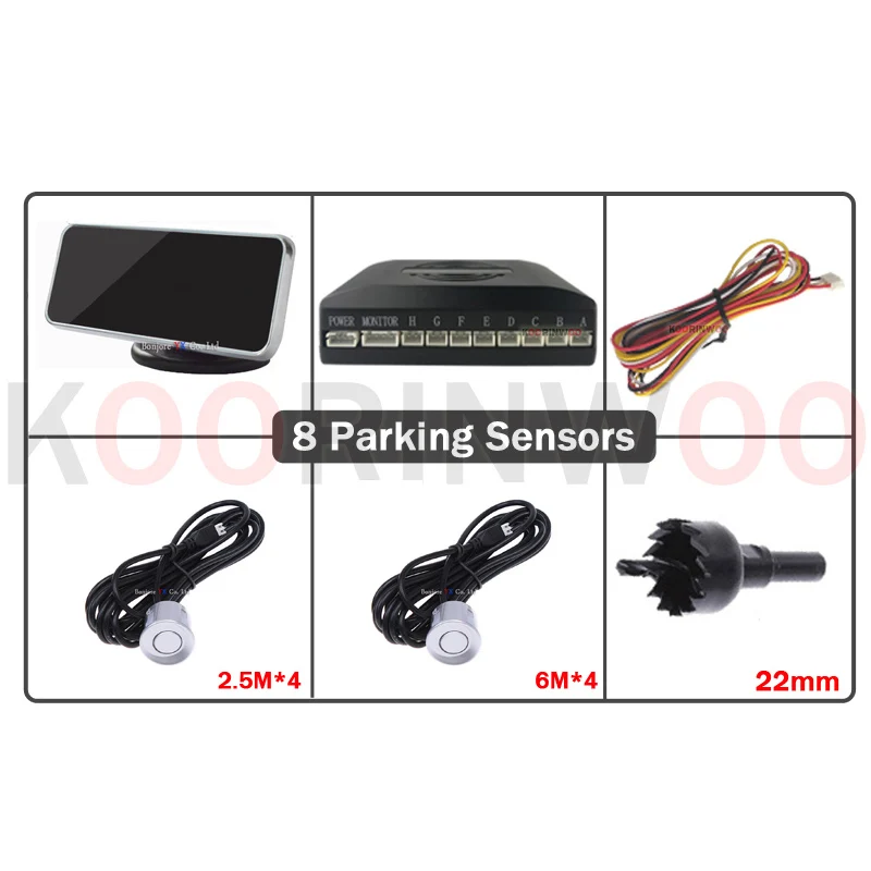 Парктроник Koorinwoo, интеллектуальная система для автомобилей, датчик парковки с 8 чернымибелыми радарами, авто на английском языке, автомобильные аксессуары