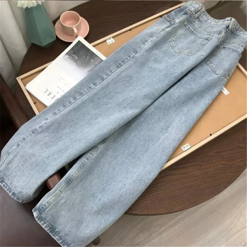 Женские джинсовые брюки-светильник, винтажные широкие брюки, корейс...