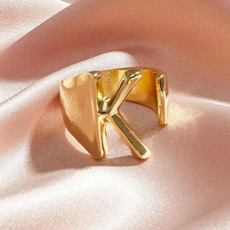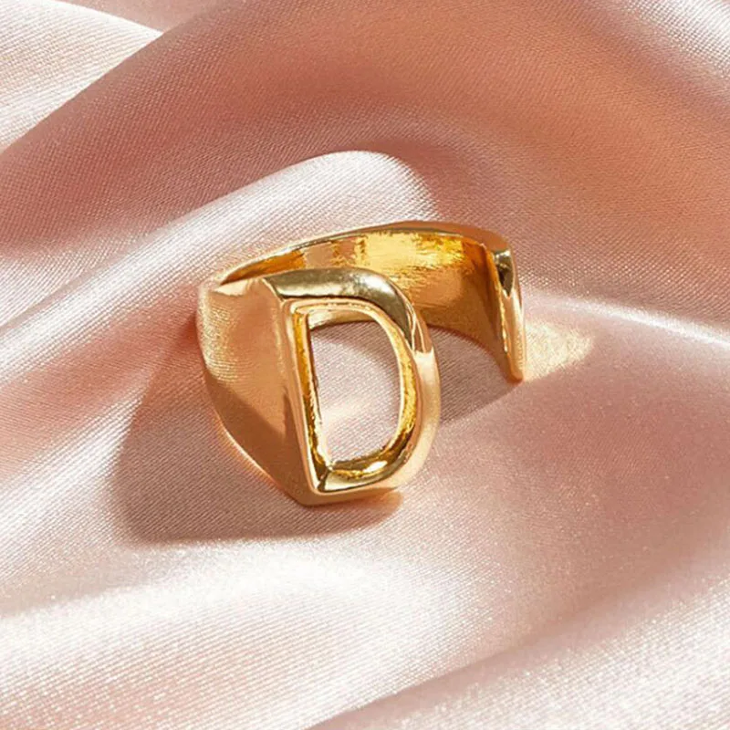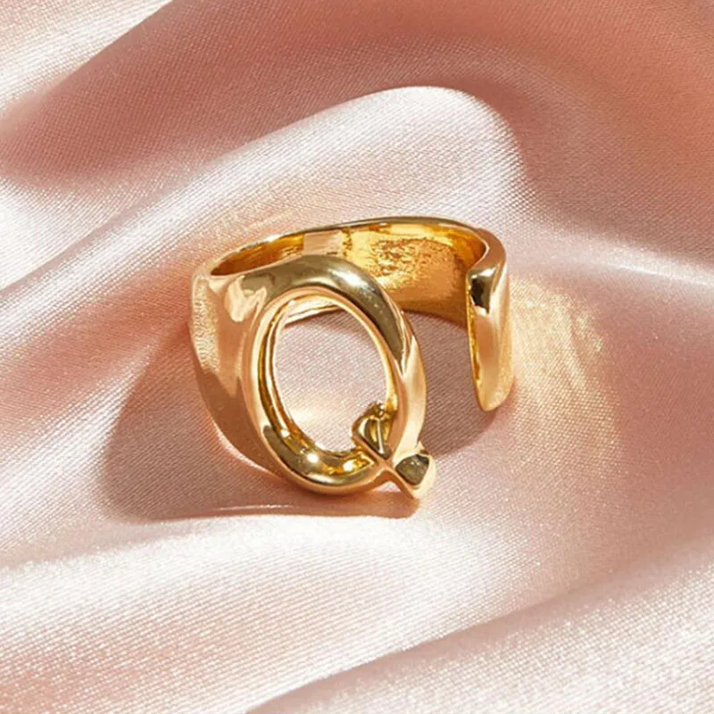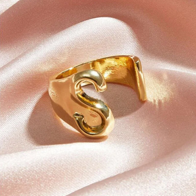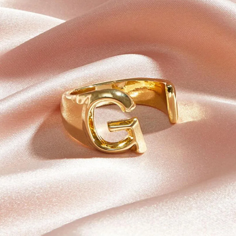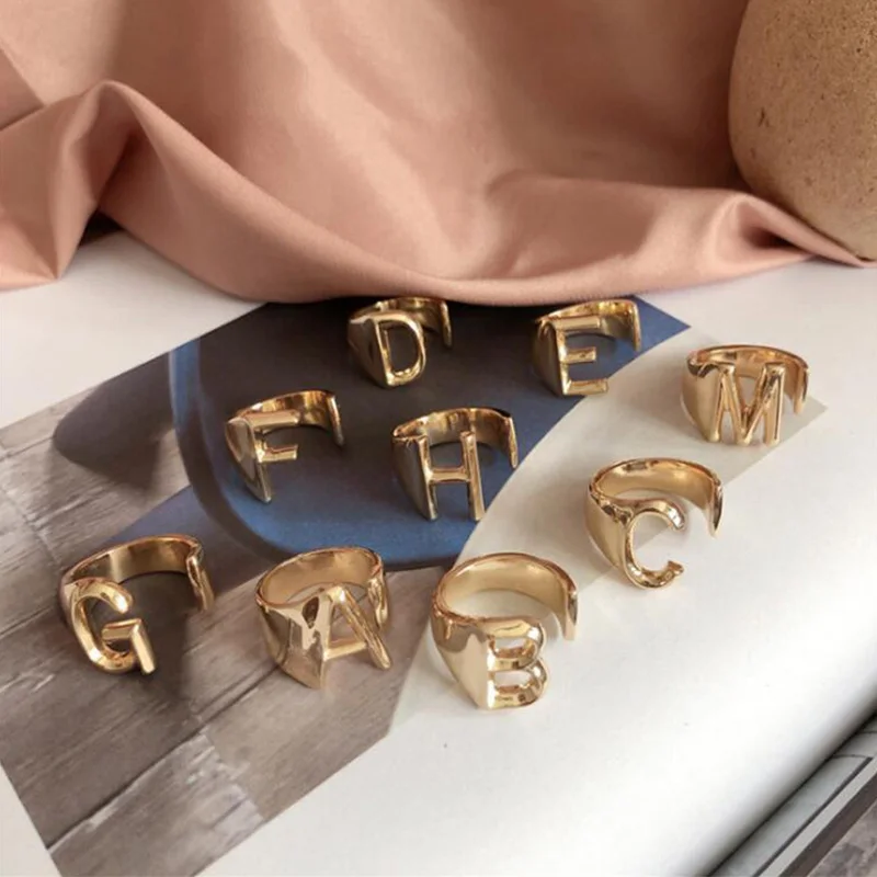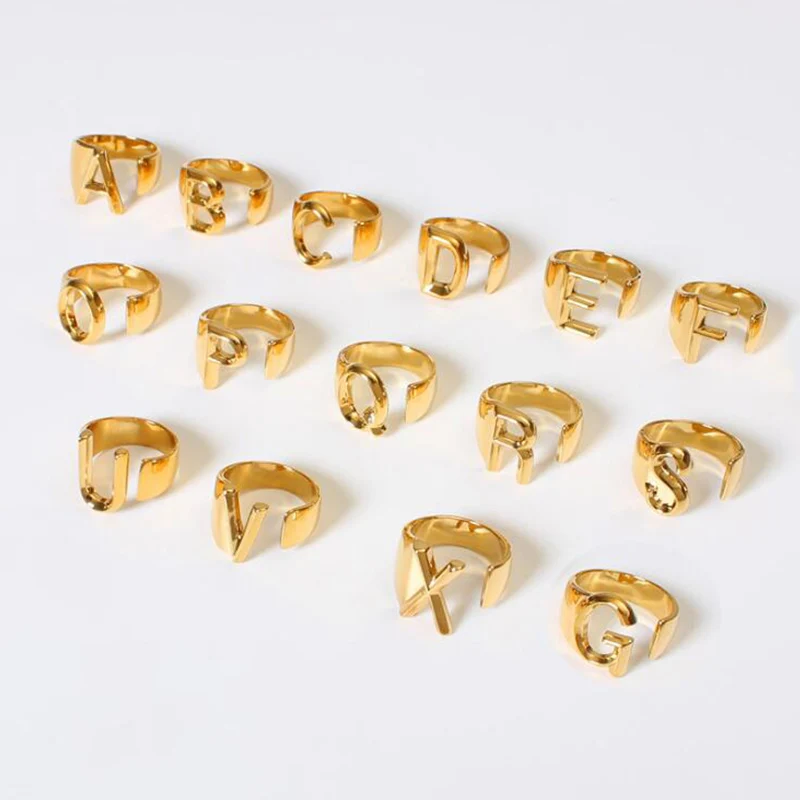 Модные полые A-Z письмо золото Цвет Регулируемый Открытие Кольцо английские буквы инициалы имя Алфавит женские вечерние модные ювелирные изделия