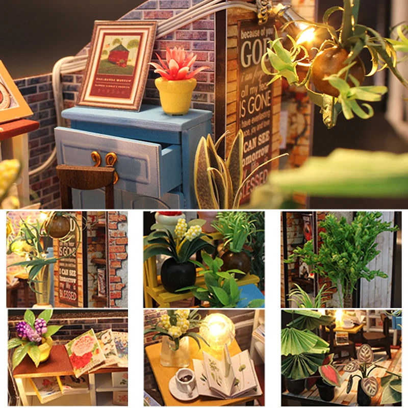Набор миниатюрного кукольного домика сделай сам в европейском стиле, кафе светильник кой, 3D деревянная модель, рождественский подарок, детские игрушки, кукольный домик, мебель