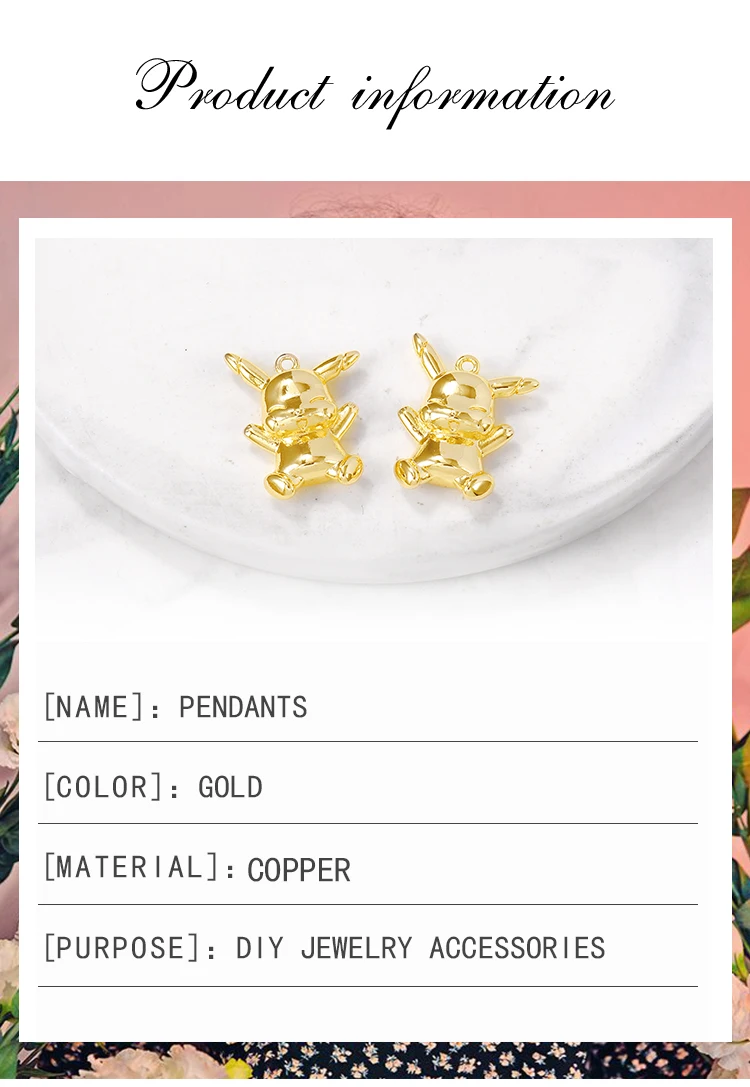 Заводская оптовая продажа золотой цвет латунь шармы Пикачу Подвески ожерелье браслет серьги Diy принадлежности для изготовления ювелирных изделий Аксессуары