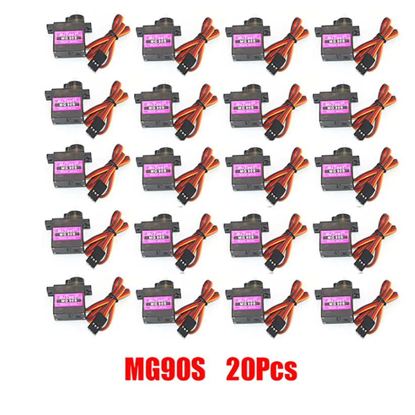 4 шт.:4 x MG90S металлический сервопривод4x25 см провод12 x серво рога12 x винт 5 шт.:Металлический сервопривод 5 x MG90SПровод 5x25 см15 x серво рога15 x винтИли10 шт.:10 x MG90S металлический сервоприводПровод 10x25 см30 x серво рога30 x винтИли20 шт.:20x MG90S металлический сервоприводПроволока 20x25 см60 x серво рога60 x винт