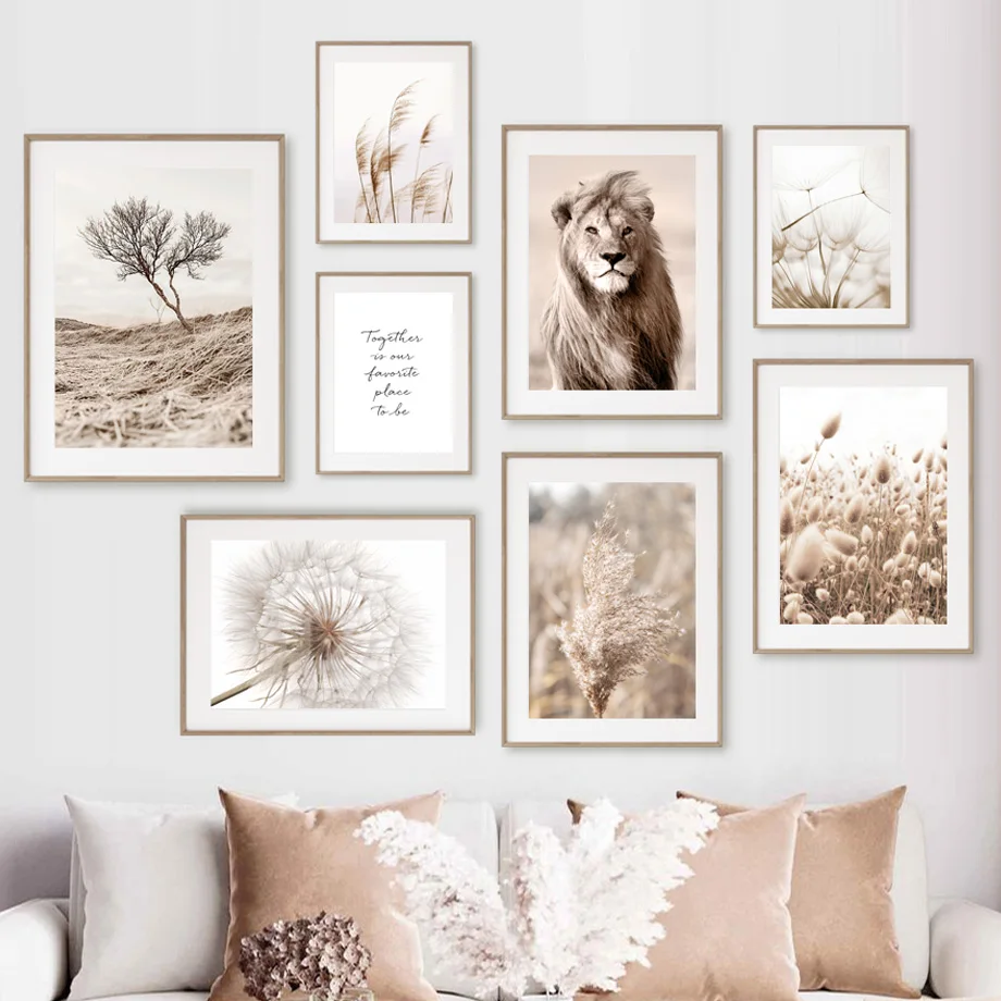 Лев Рид Одуванчик Цитата сухое дерево бежевый осенний пейзаж настен...