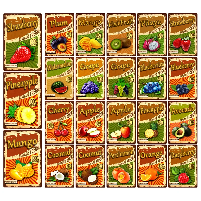 Mike86 фрукты, виноград манго Apple вишня всегда свежие металлическая жестяная вывеска постер на стену Железный живопись бар паб украшения S-01 20*30 см