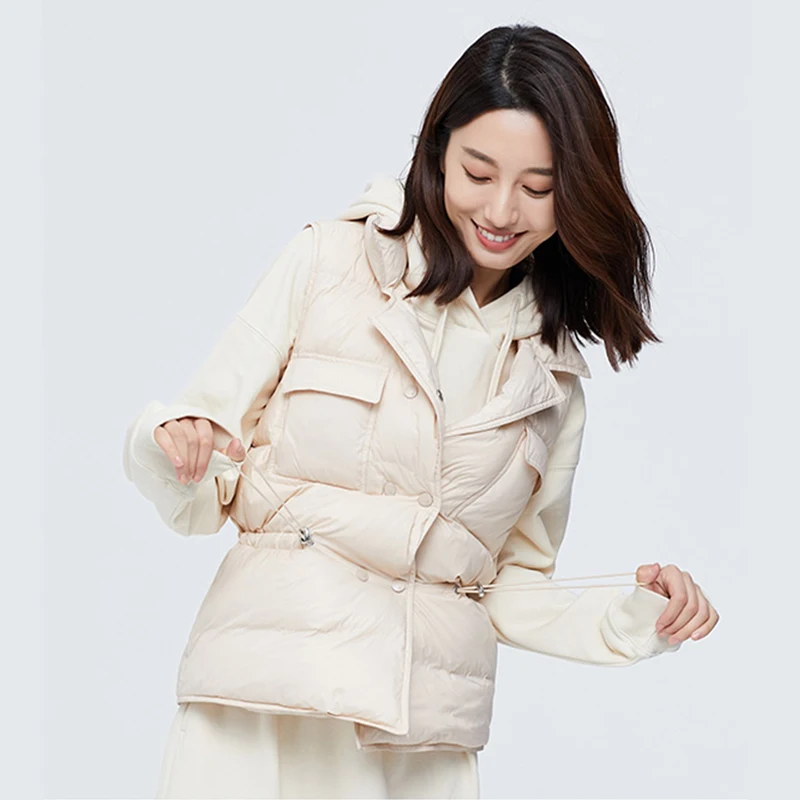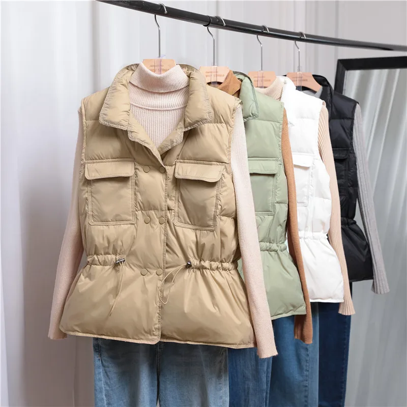 Ультра светильник пуховой жилет Для женщин короткие куртки для мальчиков на белом 90% утка вниз куртка из искусственной кожи pu ветрозащитный светильник вес Теплый жилет Регулируемый поясной ремень