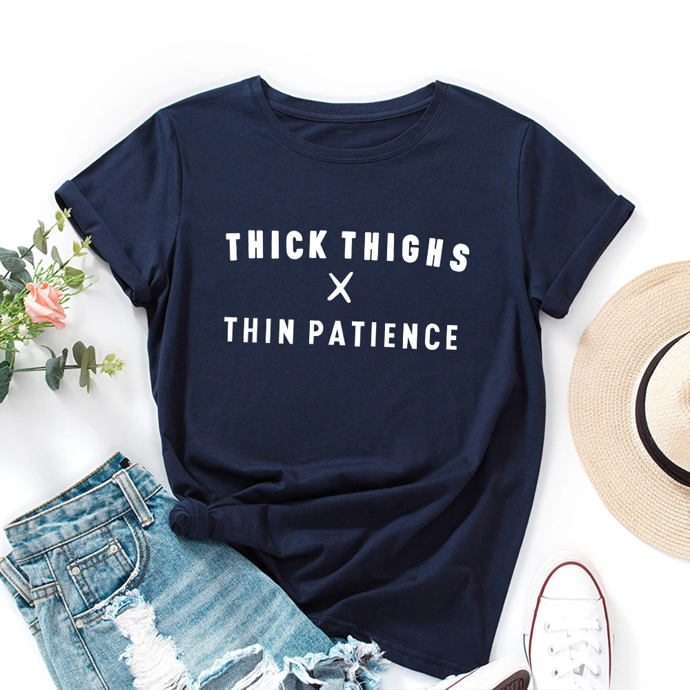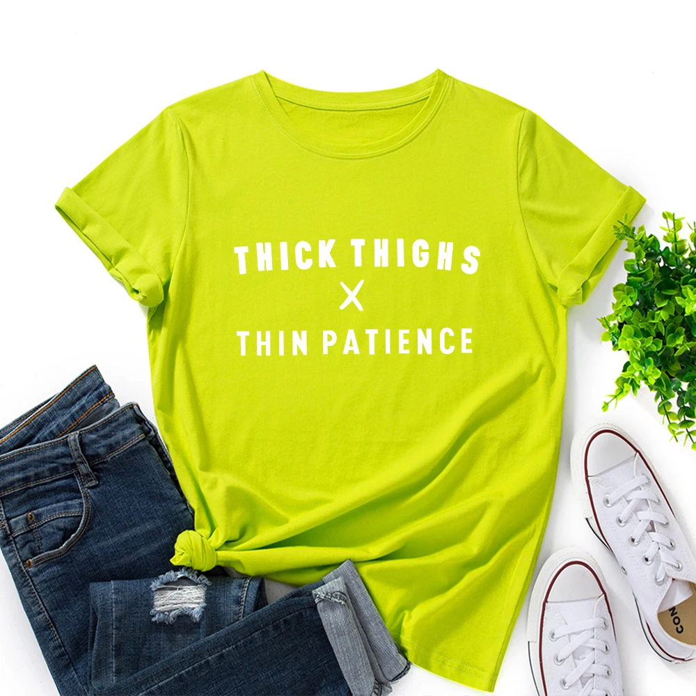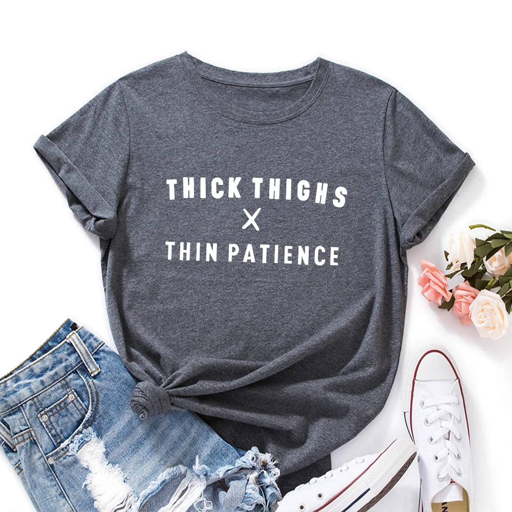 С надписью Thick Thighs тонкий терпение принтовые тройники, женские летние хлопковые футболки с короткими рукавами футболки, одежда для девочек, рубашка Топы Эстетическая одежда